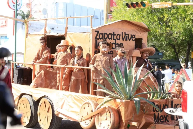 También tomó parte el contingente del 77º Batallón de Infantería con carros alegóricos alusivos a las cuatro transformaciones del país y escenificaciones de caudillos revolucionarios como Francisco Villa, Venustiano Carranza, Francisco I. Madero y Emiliano Zapata.