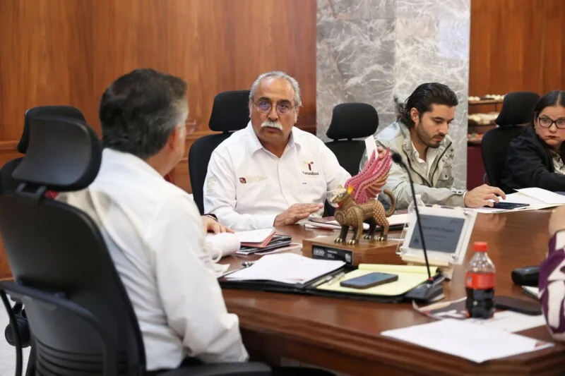 Durante la reunión, celebrada en el nuevo salón “Benito Juárez” del Palacio de Gobierno, conoció los avances de la obra de la segunda línea del Acueducto Victoria, el estatus del Puerto Seco (Recinto Fiscal en Ciudad Victoria), el Par Vial sobre el Río San Marcos, el Puerto del Norte en Matamoros, entre otros proyectos que le presentaron las y los secretarios estatales.
