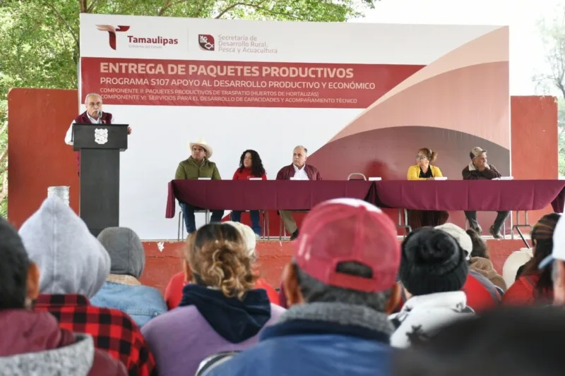 Ciudad Victoria, Tamaulipas.- Con la finalidad de atender integralmente a las familias del área rural para que mejoren su economía familiar y su alimentación mediante la producción de hortalizas, así como el desarrollo de capacidades a través del acompañamiento técnico, la Secretaría de Desarrollo Rural, Pesca y Acuacultura llevó a cabo la entrega de paquetes de huertos de traspatio en el ejido Congregación Caballeros del municipio de Victoria.