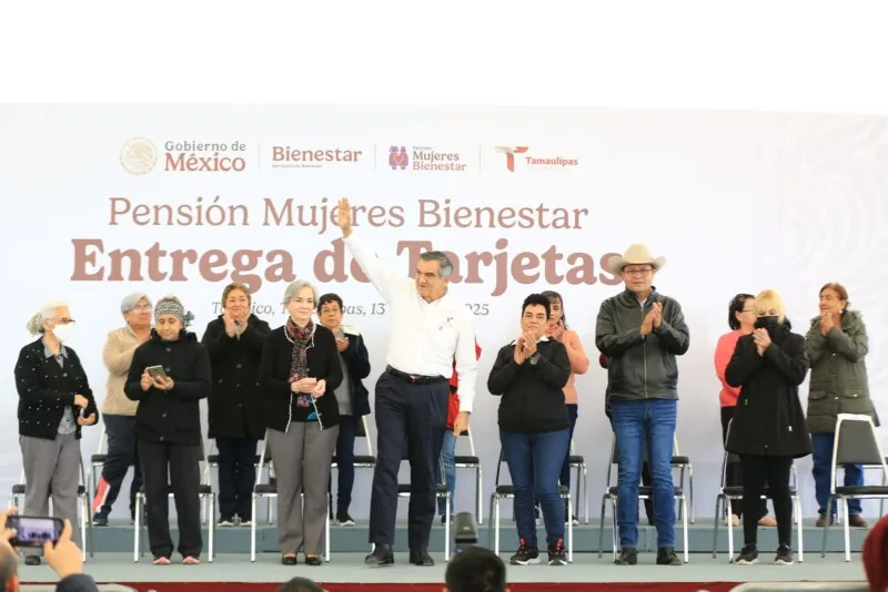 Junto al delegado de Bienestar Federal, Luis Lauro Reyes Rodríguez, el gobernador entregó la tarjeta de la Pensión Mujeres Bienestar a seis representantes de Tampico, Madero y Altamira, y aseguró que este programa es un acto de justicia a las mujeres de más de 60 años por su dedicación al cuidado de sus familias.