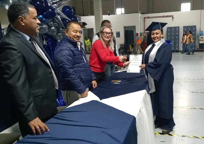 Matamoros, Tamaulipas.– El Instituto Tamaulipeco de Educación para Adultos (ITEA), entregó certificados a más de una veintena de trabajadores de la empresa Sensormatic Manufacturing by Johnson Control de México, ubicada en el municipio de Matamoros, quienes culminaron su educación secundaria.