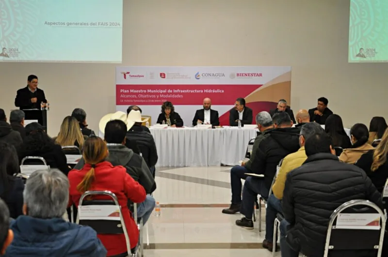 Ciudad Victoria, Tamaulipas. – La Secretaría de Recursos Hidráulicos para el Desarrollo Social, bajo la dirección de Raúl Quiroga Álvarez, en coordinación con la Comisión Nacional del Agua (CONAGUA), la Auditoría Superior del Estado (ASE), la Secretaría de Bienestar del Estado y el Sistema de Administración Tributaria (SAT), llevó a cabo la presentación de los objetivos para la elaboración del Plan Municipal de Infraestructura Hidráulica que deriva del Plan Nacional Hídrico impulsado por la presidenta Claudia Shienbaum.