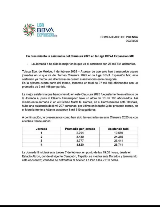 Correcaminos de la UAT continúa con el gran respaldo de su afición y durante la cuarta jornada, el equipo logró registrar una asistencia de 10,100 espectadores en el Estadio Marte R. Gómez, lo que lo posicionó como el club con la mayor asistencia de la jornada.