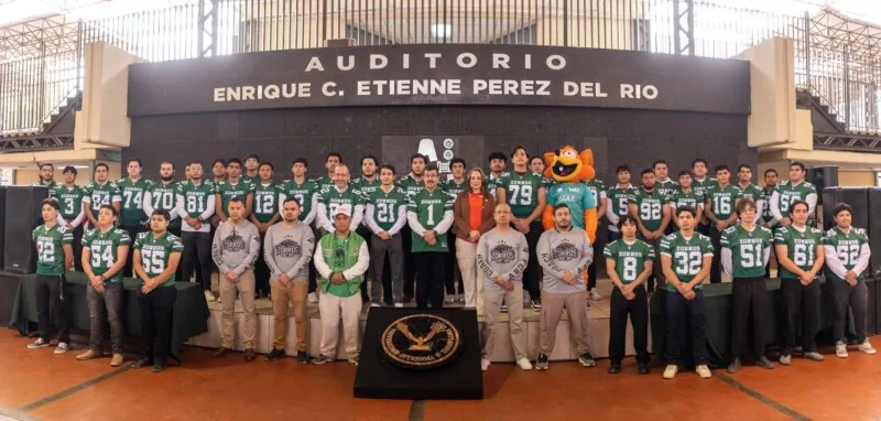 En la ceremonia, el rector hizo entrega simbólica de uniformes y hombreras a los integrantes del equipo de fútbol americano de esta Facultad, quienes, a su vez, entregaron al rector y a su esposa, el jersey representativo del equipo, en reconocimiento por su respaldo al deporte universitario.