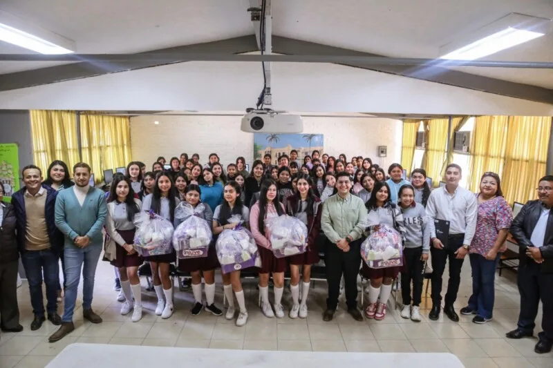 El director general del Injuve, Oscar Azael Rodríguez Perales, informó que se realizó la donación de 215 kits con productos de higiene femenina a alumnas de la Escuela Secundaria Técnica No. 5 Ing. Marte R. Gómez del poblado El Barretal, en Padilla.