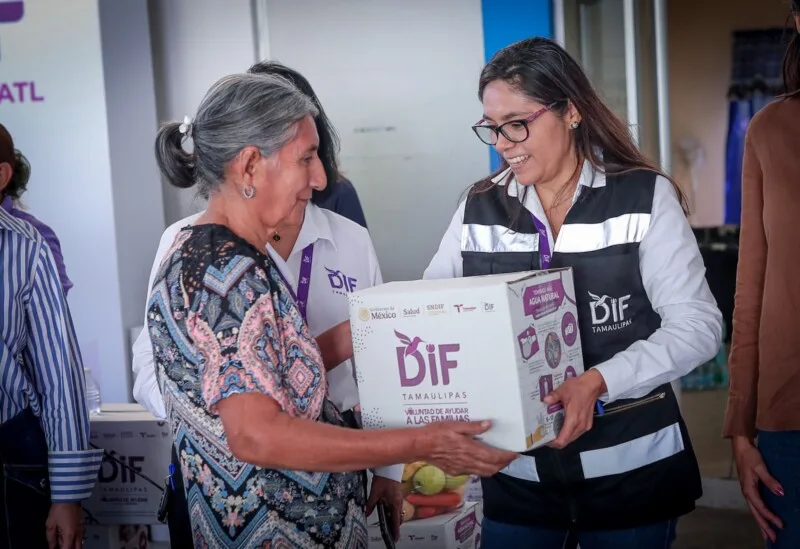 Xicoténcatl, Tamaulipas.- El Sistema para el Desarrollo Integral de la Familia de Tamaulipas, presidido por la doctora María de Villarreal, inició con la primera entrega de canastas alimentarias del año, la cual se llevó a cabo de manera simbólica en la región cañera.
