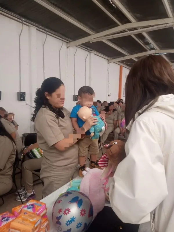 El donativo consistió en toallas sanitarias, artículos de higiene personal y juguetes para las y los menores que viven con sus madres en el módulo femenil.