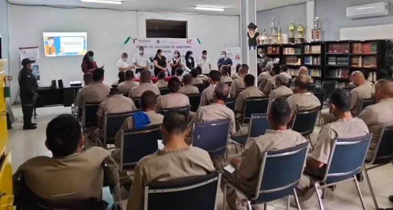 Reynosa, Tamaulipas.- En el marco del Día Internacional de la Tuberculosis, personal de la Jurisdicción Sanitaria Número Cuatro acudió al Centro de Ejecución de Sanciones (CEDES) del municipio de Reynosa para llevar a cabo una campaña de detección oportuna de esta enfermedad.