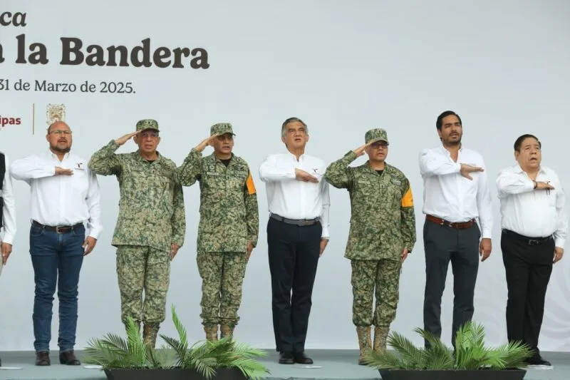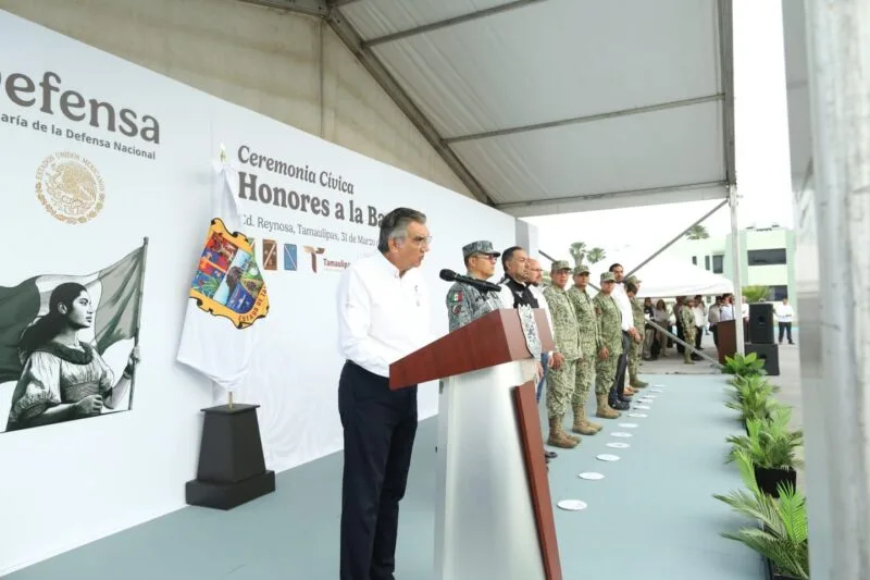 - Al encabezar ceremonia de honores a la bandera en Reynosa, el gobernador reconoció la respuesta institucional y comunitaria con el fin de proteger vidas y poner a salvo a la población en riesgo