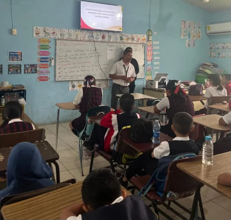 Nuevo Laredo, Tamaulipas.- Con la finalidad de informar y sensibilizar en la infancia respecto a conductas antisociales y conflictos con la Ley Penal en la niñez y adolescencia, personal del Centro de Ejecución de Medidas para Adolescentes del municipio de Nuevo Laredo impartió una plática a estudiantes de primaria.