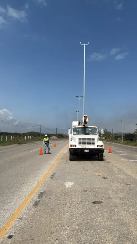 Destacó que, esta red de alumbrado público cuenta con 128 postes y 256 luminarias y en la última etapa de la obra, se construyeron las bases de concreto hidráulico para instalar los postes metálicos galvanizados colocando 28 lámparas solares en la parte de Altamira, mientras que en la zona de Ciudad Madero se realizaron las mismas labores con instalación de 34 lámparas para terminar la obra en esta importante avenida.