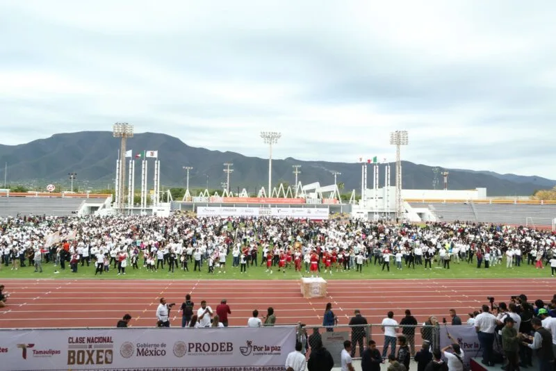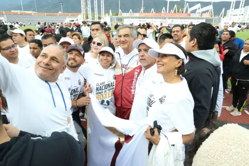 Ciudad Victoria, Tamaulipas. – Tamaulipas se sumó con éxito a la Clase Nacional de Boxeo «Por la paz y contra las adicciones”, con una participación multitudinaria encabezada por el gobernador Américo Villarreal Anaya y la presidenta del DIF Estatal, María de Villarreal, siguiendo en todo momento el evento presidido por la presidenta Claudia Sheinbaum, en el Zócalo de la Ciudad de México.