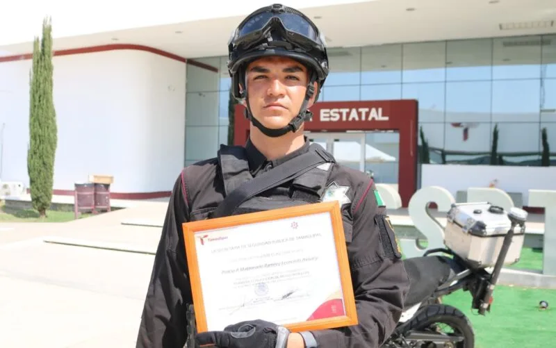 Ciudad Victoria, Tamaulipas. – Tras concluir su participación en el Curso Intensivo de Motopatrullaje, el policía A, Leonardo Maldonado Ramírez, expresó su reconocimiento y agradecimiento al gobernador de Tamaulipas, Américo Villarreal Anaya; y al secretario de Seguridad Pública del Estado, Sergio Hernando Chávez García, por brindarles la oportunidad de fortalecer sus habilidades operativas.