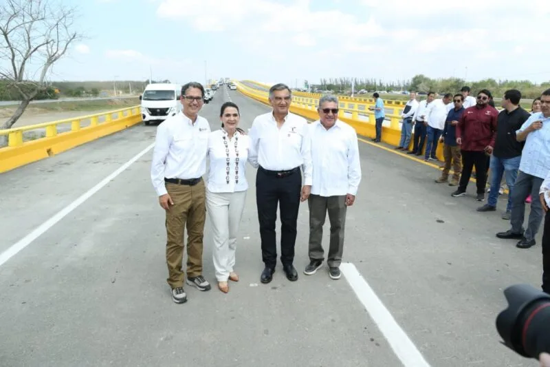Acompañado por los alcaldes de Altamira, Armando Martínez y de Madero, Erasmo González y la alcaldesa de Tampico, Mónica Villarreal, el gobernador del Estado, cortó el listón inaugural del puente en el que se invirtieron más de 293 millones de pesos.