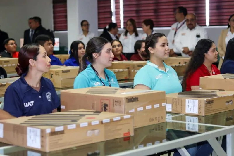Ciudad Victoria, Tam.; 13 de mayo de 2025.- Con el propósito de fortalecer las condiciones para la enseñanza y el aprendizaje en la Universidad Autónoma de Tamaulipas (UAT), el rector Dámaso Anaya Alvarado hizo entrega de equipos de cómputo de última generación en las unidades académicas Reynosa-Aztlán y Valle Hermoso.