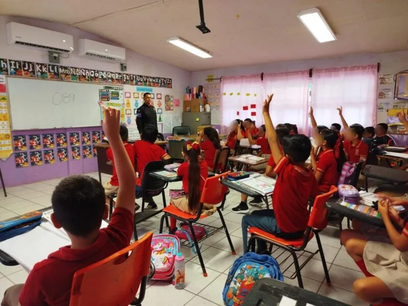 Durante la jornada, los elementos de la Guardia Estatal impartieron pláticas dirigidas a alumnos y docentes sobre concientización, prevención de la violencia contra niñas y niños, y el fomento a los valores y el respeto.