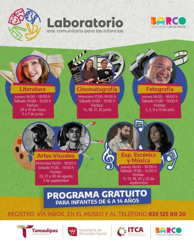 Este espacio destinado al esparcimiento y la creación para niños y niñas en el sur del estado contará con actividades de cine, fotografía, artes visuales, experimentación escénica, música y literatura, sesiones que serán lideradas por experimentados artistas y creadores tamaulipecos.