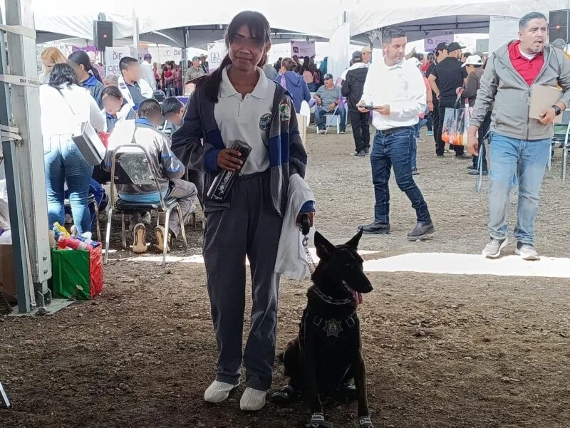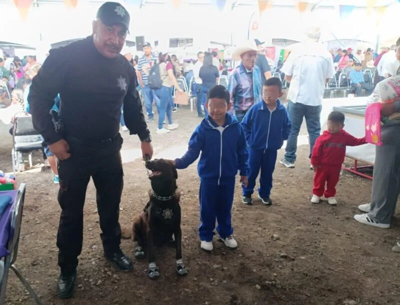 Miquihuana, Tamaulipas.- Atendiendo la convocatoria del Sistema DIF Tamaulipas, elementos del Agrupamiento Canino de la Guardia Estatal participaron en la Brigada Transformando Familias, celebrada en el municipio de Miquihuana.