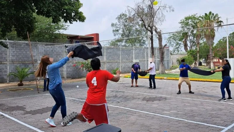 Algunas de las dinámicas fueron el juego de la soga, voleibol con globos y el juego de las sillas, mismas que fomentan la actividad física y trabajo en equipo entre adolescentes.