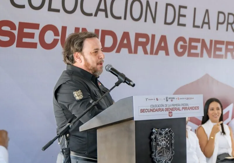 En representación del gobernador Américo Villarreal Anaya, el secretario de Educación de Tamaulipas, Miguel Ángel Valdez García, y el alcalde reynosense, Carlos Peña Ortiz, colocaron la primera piedra de la nueva Secundaria General Pirámides, que se construirá en el fraccionamiento del mismo nombre en este municipio.