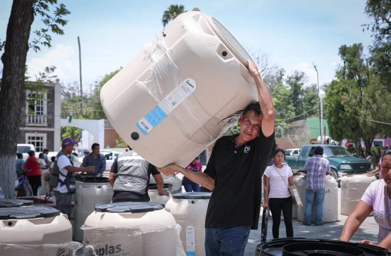 Personal del DIF y del Gobierno del Estado regresaron a Jaumave, donde realizaron la entrega de 455 tinacos de 450 litros, además de 130 apoyos directos en respuesta a diversas peticiones de los habitantes de la región, tales como material para el mejoramiento de vivienda, aparatos funcionales y herramientas para el autoempleo.