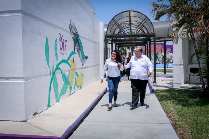 La diplomática fue acompañada por el procurador de Protección de Niñas, Niños, Adolescentes y Familia (PNNAF) del DIF Tamaulipas, Jorge Alberto Galván Garcés, con quien recorrió las instalaciones del centro y conoció de primera mano el funcionamiento de cada una de las áreas.