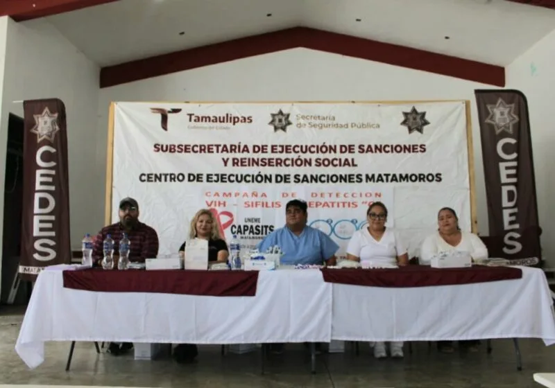 Matamoros, Tamaulipas.- Con la finalidad de detectar y atender Infecciones y Enfermedades de Transmisión Sexual (ITS y ETS), se llevó a cabo una campaña para la detección de Virus de Inmunodeficiencia Humana (VIH), hepatitis C y sífilis en el Centro de Ejecución de Sanciones (CEDES) del municipio de Matamoros.