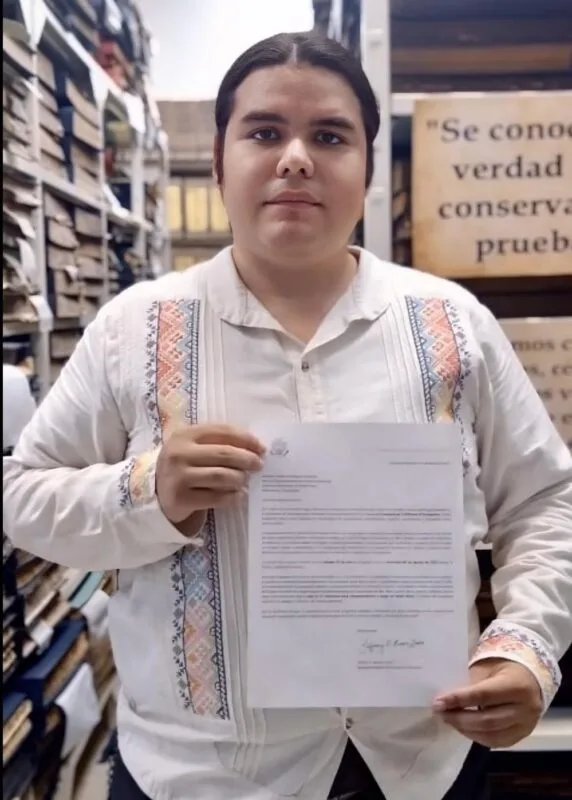 Originario de Matamoros, Roboam Rodríguez cursa actualmente sus estudios en la UAT, en modalidad remota, y al mismo tiempo se desempeña como cronista oficial de su ciudad natal y responsable académico del Archivo Histórico Municipal.