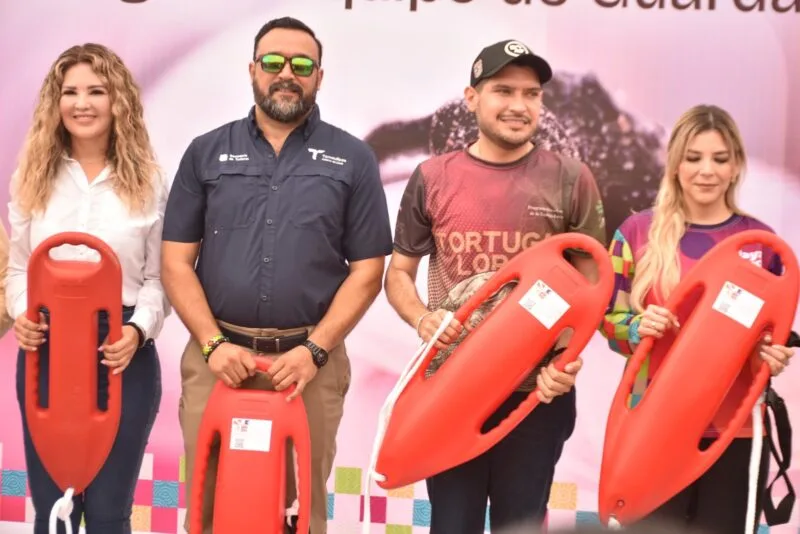 Entre el equipo entregado al personal están desde boyas de rescate, megáfonos, carrete de vida o carrete de rescate, silbatos, gorras y playeras distintivas del cuerpo de rescate, entre otros más.
