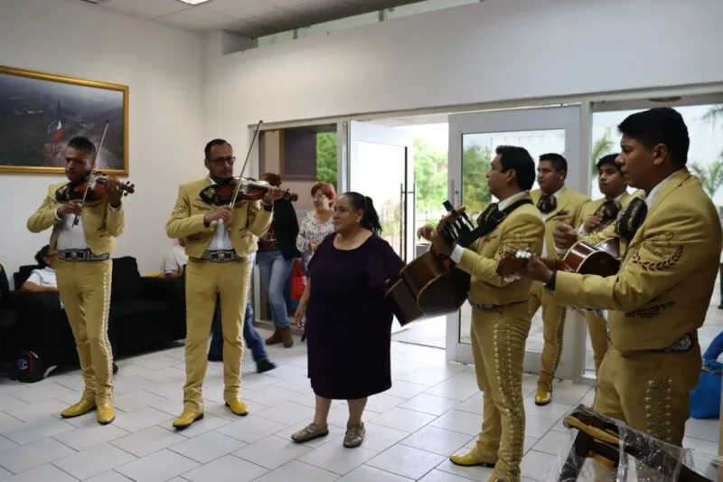 Ciudad Victoria, Tamaulipas.- Tras 34 años de servicio en la Secretaría de Seguridad Pública de Tamaulipas (SSPT), María Raquel Uvalle De la Cruz registró por última vez su salida como empleada de esta dependencia, concluyendo su jornada laboral con los abrazos de sus compañeras y compañeros, quienes le dedicaron una serenata con mariachi.
