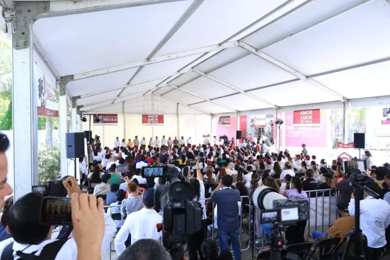 Tampico, Tamaulipas. – La presidenta Claudia Sheinbaum Pardo presidió esta tarde, en este puerto, la Asamblea del programa Salud Casa por Casa, en el inicio de su gira temática de salud, en la que reconoció a Américo Villarreal como un gran gobernador, «atento a su pueblo siempre».