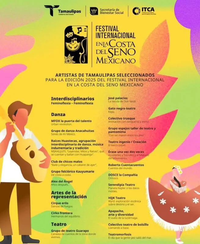 El Festival Internacional en al Costa del Seno Mexicano se llevará a cabo del 3 al 12 de octubre del 2025 a lo largo y ancho de Tamaulipas, con actividades y presentaciones artísticas gratuitas.