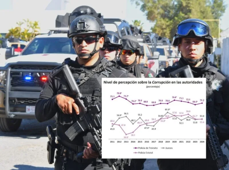 La misma señala que, en el 2022 la percepción de confianza en la entonces Policía Estatal era de un 53.8% mientras que, en el 2023 aumentó a un 61.3% y en el 2024 alcanzó los 62.6 puntos porcentuales.