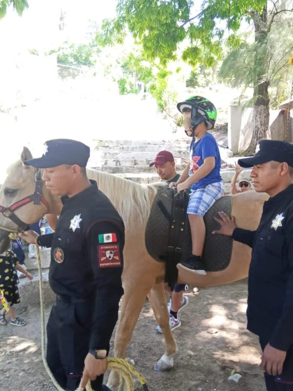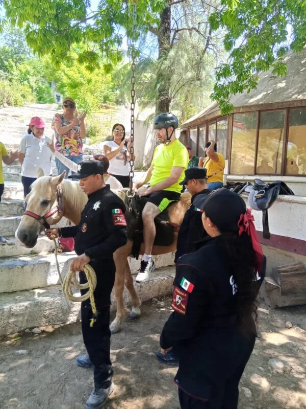 La actividad denominada ‘’Equinoterapia Símbolo del Infinito’’ es coordinada por personal capacitado de esta asociación civil e integra a jinetes y equinos de la Guardia Estatal.