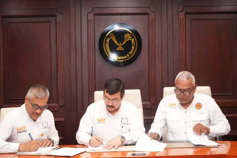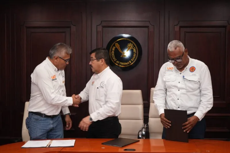 Ciudad Victoria, Tam.; 12 de agosto de2025.- La Universidad Autónoma de Tamaulipas y el Sindicato Único de Trabajadores de la UAT (SUTUAT) consolidaron este lunes un paso significativo al formalizar la firma del Contrato Colectivo de Trabajo correspondiente al año 2025. Este acuerdo refuerza las relaciones laborales y establece bases firmes para continuar avanzando de manera conjunta en beneficio de toda la comunidad universitaria.