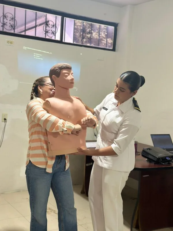 Las asistentes recibieron instrucción teórica y práctica en técnicas básicas de primeros auxilios, impartida por instructores de la Secretaría de Marina Armada de México y paramédicos de Protección Civil municipal.