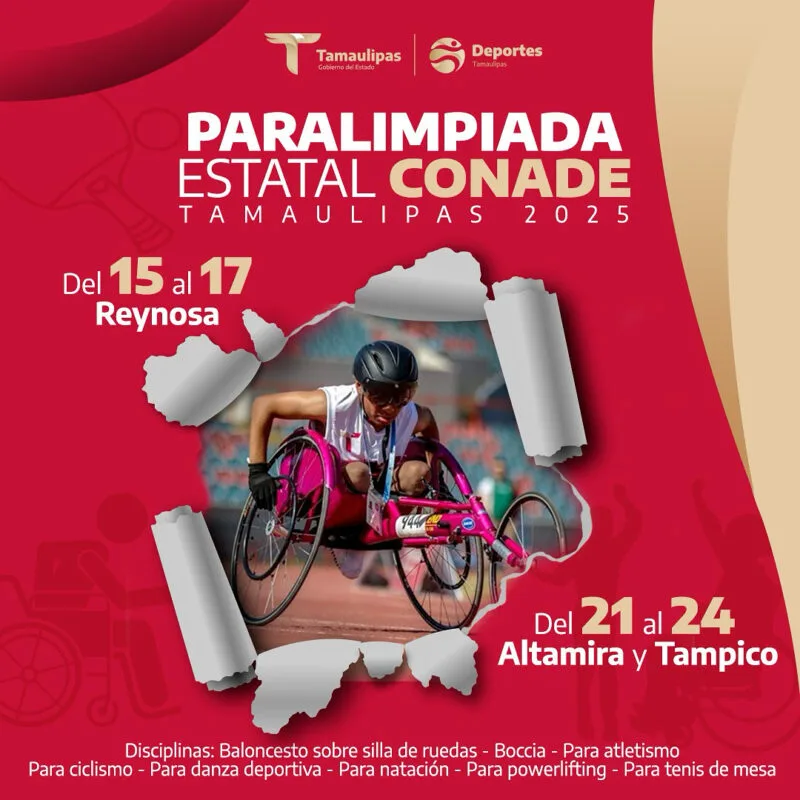 Ciudad Victoria, Tamaulipas.- Con el compromiso de impulsar el deporte adaptado y fomentar la inclusión, el Gobierno del Estado de Tamaulipas, a través del Instituto del Deporte, anuncia la realización de la Paralimpiada Estatal CONADE 2025, competencia que tendrá carácter de selectivo rumbo a la etapa nacional.
