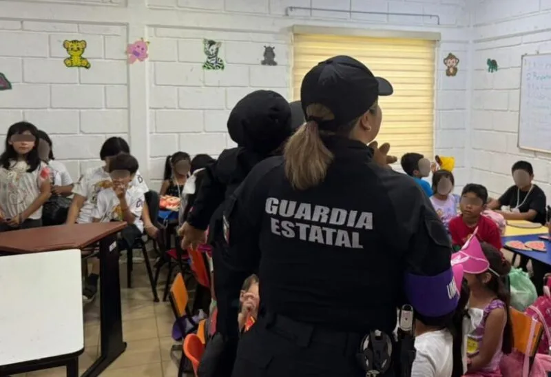 Altamira, Tamaualipas.- Dentro de las acciones preventivas realizadas por el personal de la Guardia Estatal durante el verano, elementos de la Delegación Regional Zona Sur visitaron el Centro Recreativo Tamul Arrecifes para llevar pláticas informativas a niños, niñas y adolescentes (NNA).