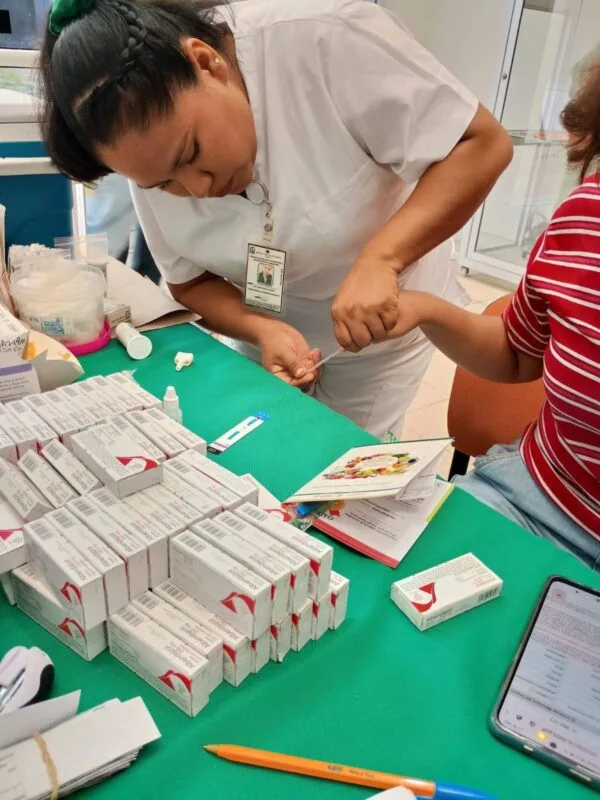 Mediante el programa PREVENIMSS, estudiantes de todas las carreras de la universidad tuvieron la oportunidad de participar en la jornada de salud, en la que se brindaron servicios de control de peso, talla, medición de glucosa y una campaña de vacunación contra el sarampión.