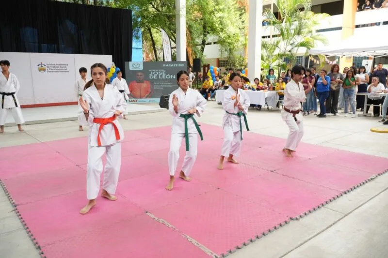 En la exhibición de deportes se ha contado con la participación de estudiantes que son parte del equipo de futbol Correcaminos, medallistas en la Universiada Nacional y jóvenes que se han destacado en eventos nacionales e internacionales.