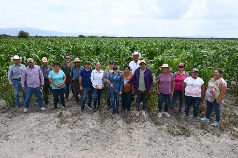 Posteriormente, se realizó un recorrido por las parcelas donde se cultiva el maíz, en el que técnicos extensionistas y productores explicaron las labores realizadas, tales como la preparación del terreno, siembra, control de malezas y manejo de plagas. Estas actividades se llevan a cabo bajo la asesoría y capacitación técnica brindada por la Dirección de Extensionismo Agrícola.