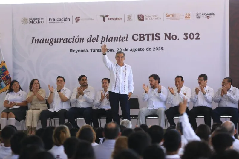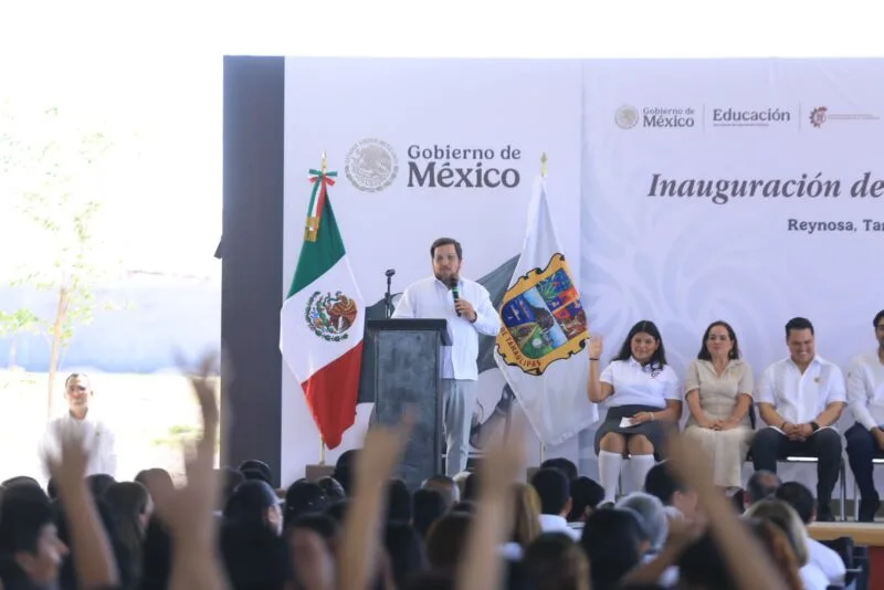 En este acto Miguel Ángel Valdéz García, secretario de Educación en Tamaulipas, destacó que, gracias a estos apoyos, todas y todos los alumnos de educación media superior «cuentan con un banco, con un maestro y con un aula como esta. No se nos quedó ninguno fuera», expresó.