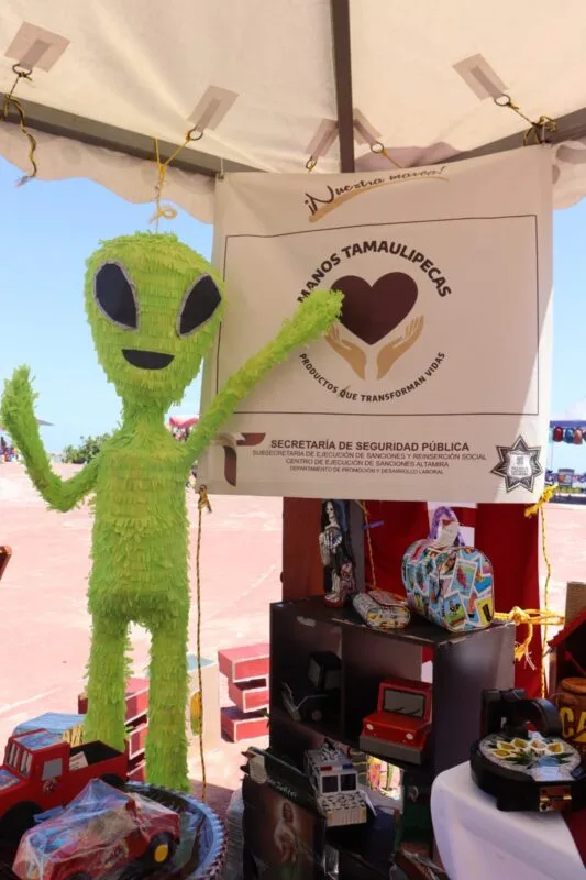 Ciudad Madero, Tamaulipas.- Tras varias semanas de exposición y venta de artesanías elaboradas por personas privadas de la libertad (PPLs) del Centro de Ejecución de Sanciones (CEDES) del municipio de Altamira, el módulo ‘’OVNI-CEDES’’ fue retirado de la Playa Miramar superando la expectativa de ventas proyectadas.