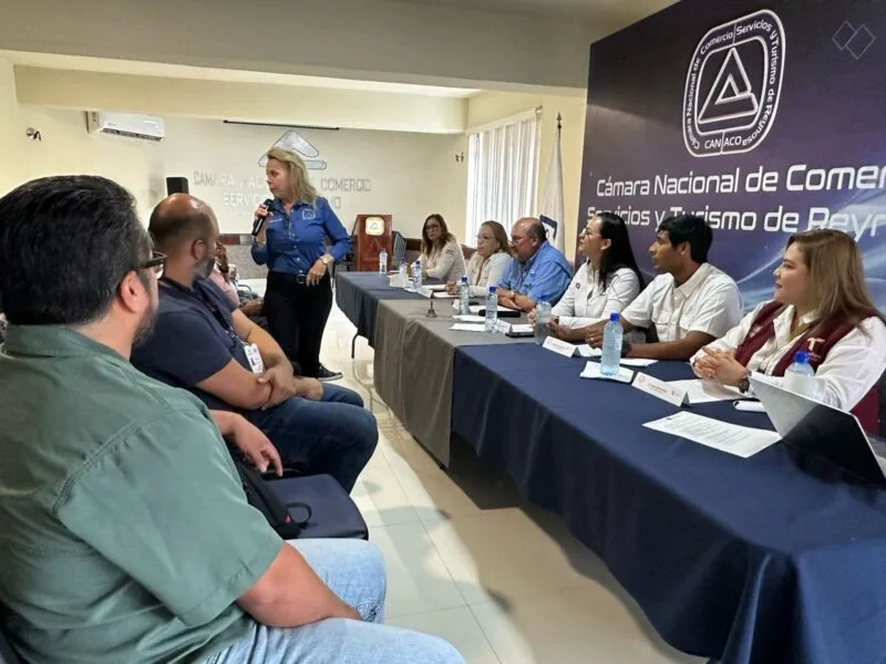 Reynosa, Tamaulipas.- Con el compromiso de fortalecer una cultura de prevención y de respeto a los derechos laborales, la Secretaría del Trabajo y Previsión Social (STPS), que encabeza Luis Gerardo Illoldi Reyes, llevó a cabo una capacitación informativa en las instalaciones de la Cámara Nacional de Comercio (Canaco) de Reynosa, enfocada en la conocida Ley Silla.