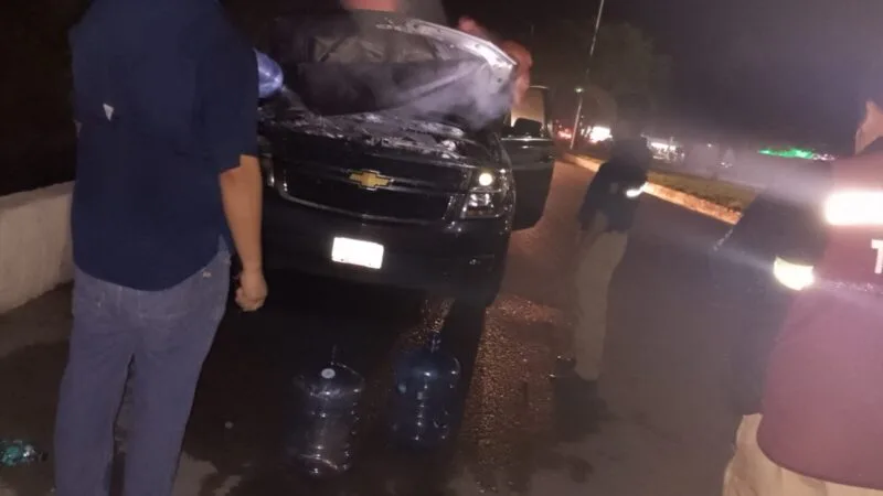 Al notar que el fuego se estaba propagando, los tránsitos fueron a un local donde había garrafones de agua y también consiguieron una pala y fue así que con agua y tierra lograron apagar el incendio. Un oficial se encargó de abrir el cofre y así sus compañeros empezaron a controlar el incendio.