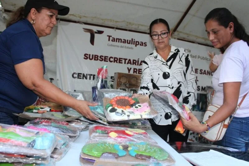 Matamoros, Tamaulipas.- En el marco de las fiestas patrias, el Centro de Ejecución de Sanciones (CEDES) en el municipio de Matamoros instaló un módulo de exposición y venta de productos elaborados por personas privadas de la libertad (PPLs).