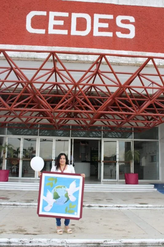 El mensaje gráfico incluyó la leyenda “CEDES Victoria por la Paz”; cuyo mensaje se profundizó con la lectura del libro “El Diario de Anna Frank” y la proyección de la película “La Vida es Bella”, historias que fomentan la cultura del perdón, tolerancia y esperanza para lograr la paz.