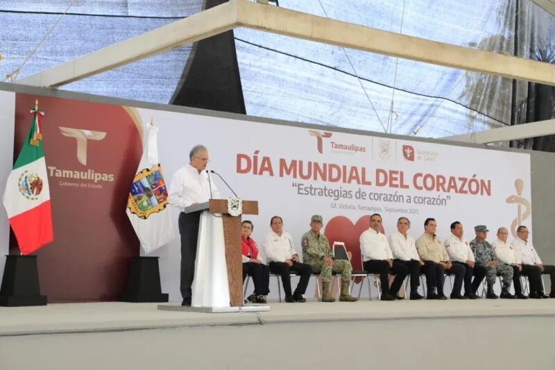 Ciudad Victoria, Tamaulipas. – En el marco de la conmemoración del Día Mundial del Corazón, el gobernador Américo Villarreal Anaya convocó a todo el personal del sector salud a ser educadores de las y los tamaulipecos y reforzar el cuidado de los factores de riesgo promoviendo estilos de vida saludables, lo que permitirá continuar la reducción de la mortalidad de pacientes hospitalizados por infarto agudo de miocardio, que en lo que va de la administración ha disminuido en un 25 por ciento.