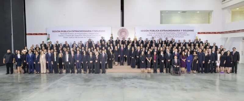 Ciudad Victoria, Tamaulipas. – En un acto inédito e histórico, que fortalece al Estado, a las instituciones, y que marca el inicio de una nueva era de legalidad y justicia en Tamaulipas, el gobernador Américo Villarreal Anaya atestiguó la toma de protesta de las y los juzgadores que integran el nuevo Poder Judicial, y que convierte a Tamaulipas en unos de los primeros estados del país que elige a sus tres Poderes, democráticamente, por voto directo y secreto del pueblo.