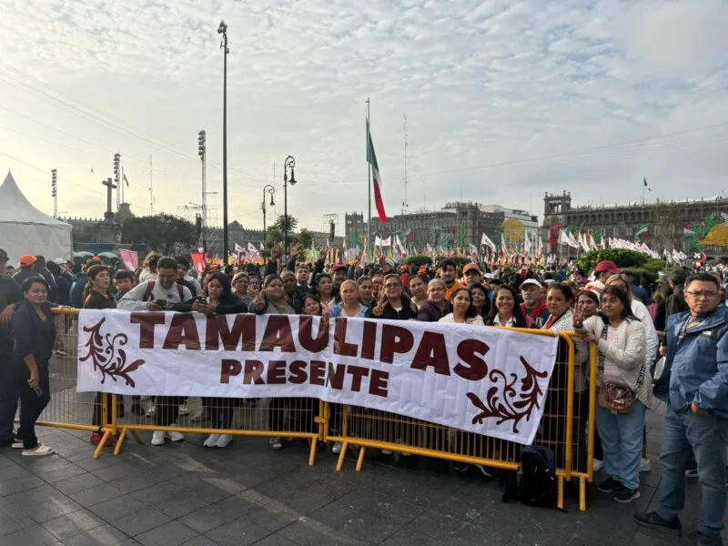 Ciudad de México. – Con un mensaje de confianza en el rumbo del país y en las mejores oportunidades para el desarrollo de la entidad, el gobernador de Tamaulipas, Américo Villarreal Anaya, acompañado por la doctora María de Villarreal, presidenta del Sistema DIF Tamaulipas, atestiguó el mensaje de la presidenta Claudia Sheinbaum Pardo, con motivo de su primer año de gobierno pronunciado en el Zócalo capitalino.